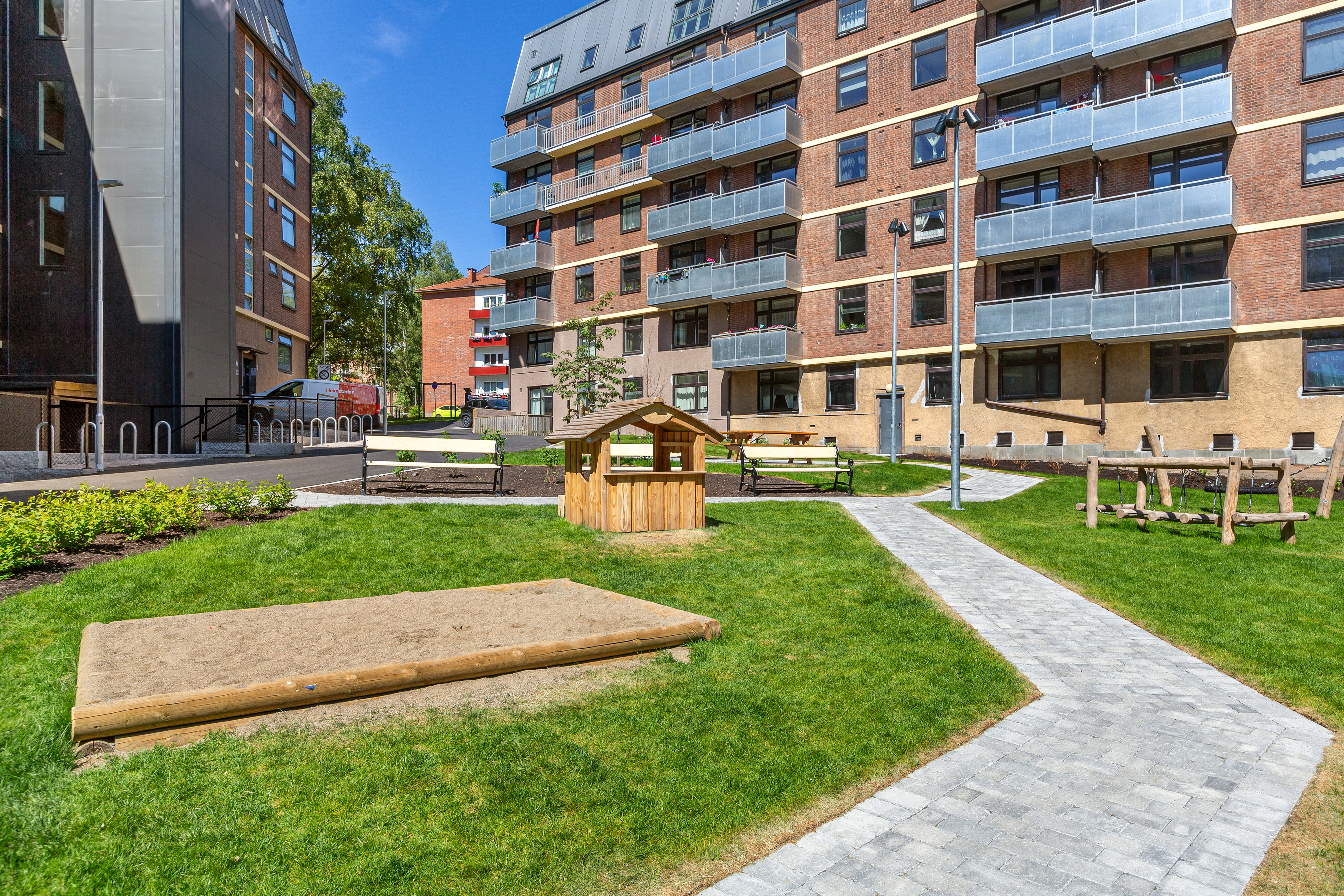 Opplev vår idylliske bakgård med parkområde, sitteplasser og et trygt lekeområde – perfekt for alle aldre. Hos oss legger vi vekt på å skape et trivelig bofelleskap hvor alle bidrar, og våre dedikerte vaktmestere er tilgjengelige hver ukedag for å sikre at alt er på stell.